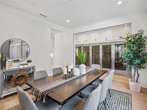 Calling all wine connoisseurs! The formal dining room is graced with a stunning wall of wine refrigerators, perfect for housing your cherished collection.