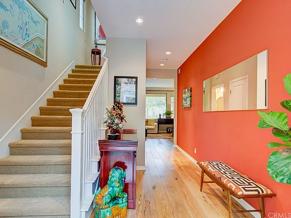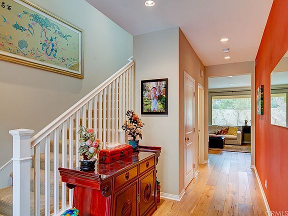 Wow! In a word, UNIQUE. In another, SPECIAL. That's 63 CIPRESSO! Original owners hand picked this location & very few can rival it. One of 6 homes whose yards don't back up to another & who enjoy views out to the hills & the Spectrum beyond. But wait, after the original builder's designer upgrades, this designer-owner added another $80,000 in improvements. Upon entering, you'll notice the Provenza Siberian Oak Hardwood floors, kitchen with MB River Gold granite counters combined w/ brick joint polished back splash & optional clear glass doors. The entire downstairs orients itself to an oversized yard w/ enclosed "California room" along w/ flagstone tile, brand new artificial turf & a beautifully painted wall that creates a backdrop for the custom fountain/fire pit & a plethora of trees (lemon & otherwise). Truly, your own private oasis! Upstairs you'll find neutral Berber carpet w/ tumbled stone travertine floors. Master bedroom boasts Cabinet Plus Closet organizers, as does every secondary bedroom. Resort worthy master bath w/ Torreon tumbled deck & Emperador honed & polished stone counter tops. Other designer touches include added custom light fixtures, crown molding, Hunter Douglas blinds & colorful draperies throughout. Even the garage has had a make over w/ 2 walls of built in cabinets, work bench & granite epoxy floors. No detail has been overlooked! Combine a stellar location w/ these quality upgrades & the result? A one of a kind home! Seize the day & make it yours.