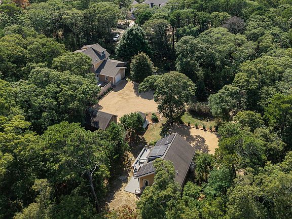 Extraordinary West Chop Opportunity - Two Homes on 1.80 Acres in Vineyard Haven Nestled next to the desirable West Chop/Mink Meadows neighborhoods, this unique property features two dwellings, making it a perfect opportunity for multi-generational living, guest accommodations, or rental potential. The welcoming, farm-style front porch on the main house looks out onto a large yard. Inside, the heart of the home consists of an open plan kitchen/living room with vaulted wood ceilings and a beautiful beach-stone fireplace. Step out the French doors onto a slate stone patio bordered by a fresh herb garden and butterfly bushes. The easy flow of the first floor provides a versatile dining room, den, a half bath, plus an ensuite bedroom, ideal for accessibility and privacy. Upstairs there are three sunny bedrooms with a full bathroom. Offering endless possibilities for customization, expansion, and storage, the house has a large semi-finished attic, an unfinished basement, and an attached one-car garage. Updates have been made to the main house, including a new roof. Multiple outdoor entertaining spaces, like the private back deck with an enclosed outdoor shower, make this a wonderful home for family and friends to gather. Situated away from the main house, the charming guest house was built in 2004. It is a cozy retreat with warm wood ceilings throughout the two bedrooms, plus one bathroom. The full kitchen/living area has vaulted wood ceilings making it feel even more spacious. Below the house, a large workshop provides an additional area for hobbies, projects, or whatever you wish. A composite deck and private outdoor shower make the guest house completely independent from the main house. The solar panels on the guest house roof were added in 2014 and service both homes. Between the homes, you’ll find a sizable storage shed/carport, ideal for outdoor equipment, and a smaller shed designed to store firewood. Both properties have passed septic inspection. Main house has a 5 bedroom septic, and the guest house has a 4 bedroom septic system. This special property at the end of Crowell Lane provides the tranquility of the West Chop woods while being close to downtown Vineyard Haven. With few homes having the added benefit of two separate dwellings on a generous lot, this is an opportunity not to be missed.
