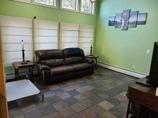Custom open floor plan, 2 full bathrooms, cathedral ceiling in great room, very airy, 2 bedrooms upstairs, 1 bedroom main floor, spacious mudroom, 1 car attached garage with storage, washer/dryer, stainless steel appliances, landline telephone and cable available for hookup, fully furnished, large sectional couch with pullout bed. Oil heat.