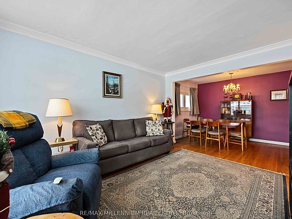 Welcome to 63 Exford Dr, Toronto. This well-maintained 3+1 bedroom home offers a functional layout with thoughtful upgrades throughout. The main floor features hardwood flooring across the living space and all three bedrooms, complemented by crown moulding in the living room for added character. The kitchen is equipped with stainless steel appliances, including a fridge, stove, dishwasher, and white hood vent.The finished basement includes an additional bedroom, a 3-piece bathroom, and its own fridge and freezer, providing flexible space for extended family, guests, or a home office.Major mechanicals and updates include a roof (12 years), furnace (15 years), HEPA system and air conditioning (6 years), and a tankless water heater (13 years). Main floor windows and the patio door were replaced approximately 14 years ago, and the garage door was updated just 1 year ago. Washer and dryer are less than 1 year old. Front concrete steps and aluminum railings were completed approximately 6 years ago. A solid home with strong fundamentals, offering comfort, practicality, and long-term value in a convenient Toronto location.