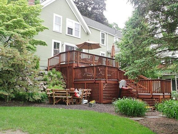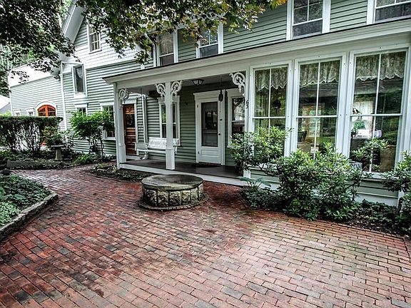 Owners downsizing after raising their family in this elegant Antique Farmhouse with attached barn built on 1.5 acres of lovely park-like grounds. Recent updates blend antique charm with modern amenities. This house has gracious living spaces and high ceilings offering a unique floor plan allowing for both formal & informal entertaining. The custom built eat-in kitchen has a fireplace, over-sized windows, ample cabinets and access to the large multi-level deck. Period details are throughout: formal dining room, living room, front parlor. 1st floor handicap full accessory apartment for in-laws or Au Pair. Nicely finished walkout basement with big windows, Hearthstone wood stove, and full bath with laundry. Upstairs there are 3 bedrooms, a sitting room, and a spacious master bedroom with cathedral ceilings and private stairway. Totaling 14 rooms, this property offers multiple living options for family, business, rental, nanny or in-law, etc. 2 minute walk to Park and acres of trails.