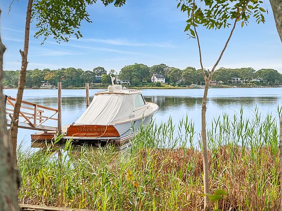 On one of the most coveted streets in Sag Harbor Village, this waterfront residence embodies a rare balance of sophistication and ease-a home where design and light converse in perfect harmony. Every room reveals a thoughtful hand: painted wood floors that feel timeworn yet refined, millwork that frames the play of sun and shadow, and spaces that invite both gathering and quiet reflection. Within its 4,000+ square feet, the home unfolds with natural rhythm. The living room, anchored by a wood-burning fireplace and coffered ceiling, opens through French doors to the harbor beyond. A dining room washed in soft light encourages long, lingering meals, while the kitchen-an artful blend of patinaed woods, stone, and crisp cabinetry-captures the essence of coastal simplicity elevated by craftsmanship. A den, office, and multiple sitting rooms offer places of retreat, each with its own character and purpose. Upstairs, five serene bedrooms include a primary suite that feels suspended between land and water. Its private terrace overlooks the harbor, a front-row seat to morning light and breathtaking sunsets. Throughout, textures and tones are deliberately restrained-allowing the architecture, the light, and the views to take center stage. Outdoors, the design extends seamlessly. A deep covered porch and bluestone terraces lead to a 20 x 40 heated gunite pool, surrounded by lawn and lush gardens that flow gently toward 100 feet of private waterfront. A separate guest cottage offers privacy for visitors, and the private dock provides instant access to the water-perfect for a morning paddle or an evening cruise beneath a painted sky. Every element of this home, from its understated palette to its handcrafted finishes, speaks to enduring quality and a sense of calm. This is a property that feels at once timeless and alive-a Sag Harbor retreat where craftsmanship meets serenity, and every day ends in magic.
