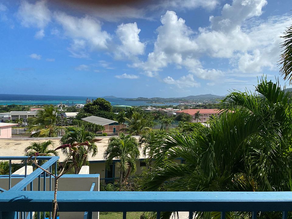 Top floor 1 bed room condo with 180 degree views of Christiansted, Hotel on the Cay and Buck Island. Updated kitchen and nicely furnished. Split A/C in Living room and window unit in bed room.Security Gate and prking on condo property and close to shopping.
