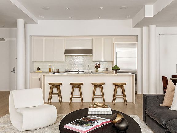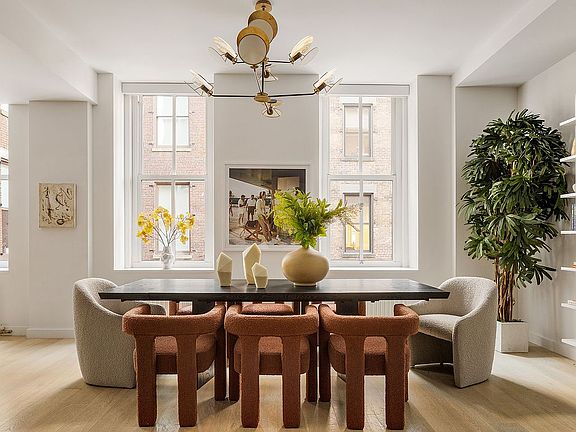 Additional features of this very special offering include wide-plank wood floors, an oversized powder room, multi-zone climate control, custom lighting throughout, washer/dryer, and fully fitted closets. With only 16 units and a part-time doorman (Monday-Friday, 8 a.m.-8 p.m.), 63 Greene was designed for privacy. Residents can enjoy views of the city from the meticulously designed and furnished roof deck featuring pristine landscaping, a waterfall, and multiple seating areas.