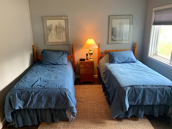 The first bedroom features two twin beds and an adjoining full bathroom with in-unit laundry for added convenience. The spacious second bedroom offers a queen bed, private ensuite bathroom, and access to a private patio.