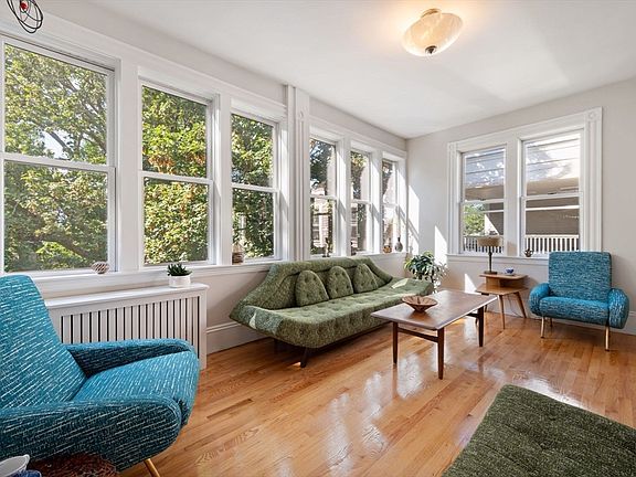 Bathed in glorious natural light, this top-floor, 1570+ sq. ft. unit exudes timeless elegance in a beautifully maintained Edwardian-era, 6-unit, owner-occupied building. A grand renovation blends period charm w/ modern living, creating an expansive open-concept living, dining & kitchen area. Anchored by a stunning wall of windows, this space radiates warmth & sophistication. Gorgeous refinished hardwood floors & fresh paint throughout add to the sense of luxury. The gourmet kitchen boasts a soapstone peninsula, a new refrigerator & gas stove with vent hood. Down the hall, the spacious main bedroom with a charming bay window adjoins 2 additional bedrooms & an office w/ built-ins. The bathroom shines with a clawfoot tub, vintage skylight, & built-in storage. With high ceilings & transom windows, this unit feels impressively spacious. All situated on a tree-lined street less than half a mile from Harvard, the city's public high school, a restaurant row & three supermarkets.