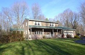 Custom Country Colonial w hardwood & tile floors throughout featuring 1st floor w completely remodeled eat-in kitchen w island, granite countertops & beautiful wood beamed ceiling open to spacious family room with fireplace & crown molding, formal dining room w wood beamed ceiling, light & bright large living room w bow window, updated half bath w granite countertop & crown molding & 3 season sunroom w vaulted wood ceiling. 2nd floor features master w walk in closet & crown molding, 2 other big bedrooms & remodeled full bath w soaking tub & separate Italian tile shower. Also features newer metal shingle roof & vinyl siding, central vacuum, security system, whole house fan, farmers porch, shed, finished 2 car garage & 30x19 barn w storage, running water & electricity can be used for car storage, workshop, studio or great horse property potential on private 8 acre lot yet close to town and major highways.