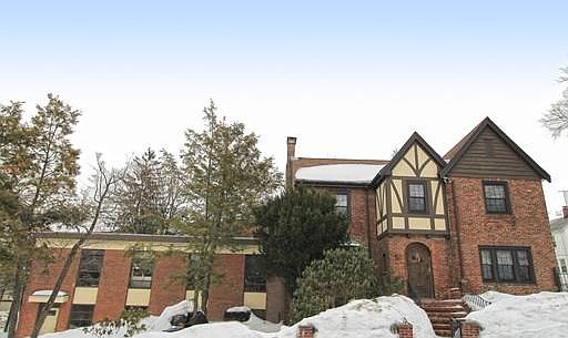 Stately Tudor style home in desirable Wellington Hill neighborhood. Arched entry door vestibule leads to the main foyer with gracious staircase. Foyer hallway opens to a sunken living room w/bay window, marble accented fireplace & formal dining room w/ additional breakfast nook. Kitchen has granite counters. Half bathroom, Solarium w/ marble flooring. Master bedroom w/private bath, two additional bedrooms, full bath & additional room perfect for office/nursery. Lower level offers a great space for playroom or man cave with another additional fireplace. Large attached two story storage area. Property is taxed as a single family, but this space offers enormous potential to a creative buyer: workshop, more living space, or even garage. Basement of attached structure has Basement Technology system in place for sump pumps.