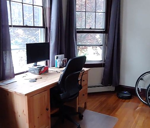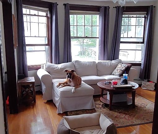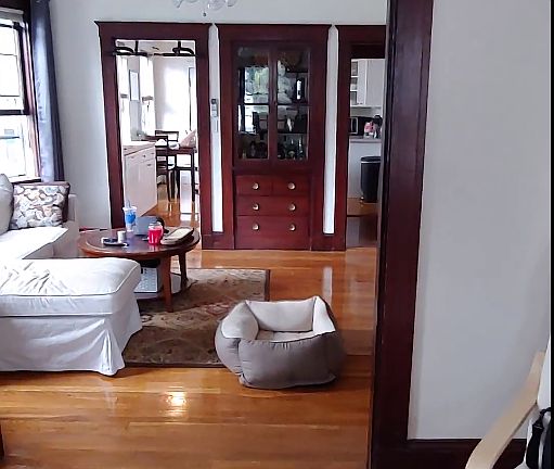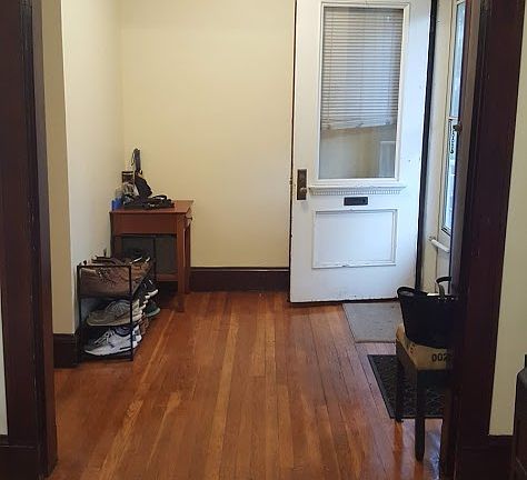 The apartment is large, sunny, and located in a quiet neighborhood. Hardwood flooring throughout, fully applianced kitchen (with brand new fridge), off street parking for two cars, and a yard. Wall air conditioners (4 total) provided by landlord. There are hookups in basement for a washer and dryer.