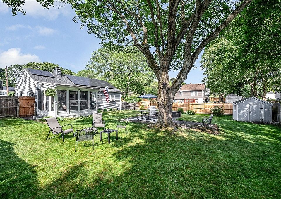 SUPER SAUGUS STUNNER! Lovingly updated & move in ready ranch - 1 LEVEL LIVING! ENJOY RELAXING OR DINING IN THE REFRESHING SUN PORCH COMPLETE W/ A CEILING FAN AND GREAT VIEWS OF THE BEAUTIFULLY LANDSCAPED & FULLY FENCED BACK YARD. This home offers more than meets the eye. 2 bedrooms w/wood flooring and a flexible BONUS ROOM provides options for a 3rd BEDROOM, office or dining room. The nicely sized living room is perfect for relaxing or entertaining and is just off the kitchen with cheerful sea blue cabinets and granite counters—fresh, fun, and full of personality! Laundry & utility room is off the kitchen. Roof 8yrs with all new wood & joists, partially floored, great lighted storage space. The property also offers two driveways—perfect for extra parking, guests, or recreational vehicles. Vinyl siding, gas heat & town wtr/sewer. Solar panels just $,83.00/month and cover all if not most of Sellers electricity cost Property has plenty of room for expansion possibilities.
