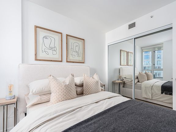 Stunning fully furnished 3-bedroom, 2-bath home in Crosstown with breathtaking water views and over 1,000 sq. ft. of beautifully renovated living space. Features include hardwood flooring, fireplace, central air conditioning, in-suite laundry, a fully equipped kitchen, king-size primary bedroom, and a lovely patio. One secondary bedroom is ideal for a guest or office. Building amenities include concierge, gym, and pool, plus parking included. Professionally managed. Minimum 6-month lease. No smoking, no parties, no subletting or Airbnb. Tenant insurance, references, and credit check required. Utilities not included. Available immediately.