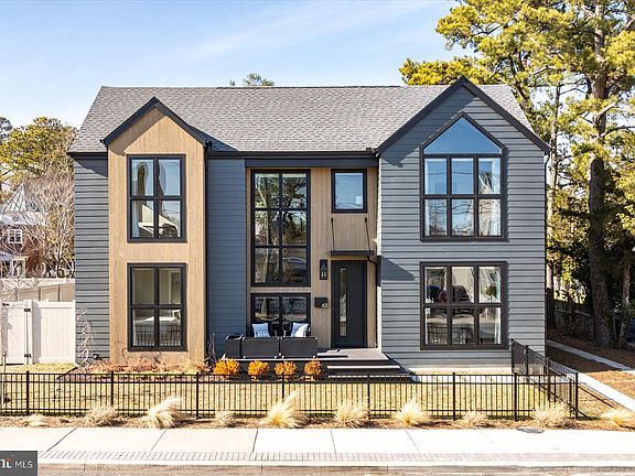 Exquisite modern luxury awaits in downtown Rehoboth Beach. Just blocks from ocean beaches and steps from local dining and shopping. This well-designed, spacious five-bedroom custom home serves stunning interior vignettes and embraces the outdoors with huge, black-framed casement windows. Just two years young, and situated on an oversized lot, this sleek home is meticulously designed for functionality and filled with an abundance of natural light. Facing southeast, the spacious foyer, second floor loft and all five bedrooms are flooded with beautiful sunlight all day long. Engage with the community on your front porch, or retreat to your private garden oasis and experience sunsets in the inground, heated saltwater pool. The open kitchen and large living area benefit from western exposure and are bathed in elegant warmth each evening at magic hour. Host dinner parties in your spacious kitchen/dining room, or outdoor poolside kitchen patio. The professional stainless ZLine seven burner gas range with griddle plate and polished brass detailing is the chef's kiss! And the oversized quartz island will keep you holding court as you prepare any meal. The custom kale green lacquer cabinetry is adorned with antiqued brass hardware, adding a vintage character to the contemporary space. Fisher & Paykel 36" refrigerator, luxe double drawer dishwasher and drawer microwave are all integrated not to detract from clean modern lines. The gracious living room with a central fireplace has dramatic vaulted ceilings and a wall of glass overlooking the backyard oasis. Three of the five bedrooms offer ensuite baths, all with walk-in showers and one with a free-standing soaking tub. Two of the ensuite bedrooms are on the main floor, off the spacious entry foyer/wet bar area. Tasteful high-end finishes, such as marble tile, quartz vanities and walnut slab stair treads nod to quiet luxury. A second floor sitting area is perfect for movie night, and access to the second-floor covered porch offers views of the pool and garden. Two laundry areas, equipped with both Electrolux and Miele washers and dryers will keep your beach, and pool towels ready for your next dip. Use the extra Smeg fridge to chill beverages, and the overflow freezer for the ice cream cake! Come experience this gem of a home for yourself. Stroll through the open floor plan and explore each suite. Live beautifully, live easily, live happily at 63 Lake Avenue in the heart of downtown Rehoboth Beach!