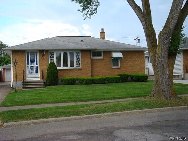 Maintenance Free Tonawanda Brick & Vinyl Ranch. Spacious living/dining combo with beautiful bay window, eat in kitchen, includes ceramic floor/backsplash & Oak Cabinetry. All three bedrooms are generous in size with ample closet space. Large (23 x 10) three seasons room with flagstone overlooks large lot with 2.5 car garage. Basement is dry and has endless possibilities. Whether you are a 1st time homebuyer or downsizing, give this home a look, it won't disappoint.