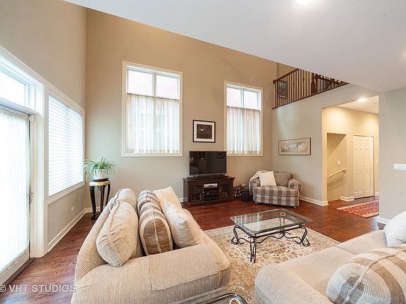Feels like a NEW single-family home.Maintenance FREE Living.Brick and Stone luxury corner 3 bedroom, 3.1 baths, 2 car garage townhome with high end architectural design in this open floor plan. Natural light pours in through large two-story Pella windows that fills the great room and upgraded open kitchen, finished with granite counters, 42" soft-close custom cabinetry, stainless steel appliances, pendant lighting over breakfast bar; Separate dining room has full wall butler's pantry with custom cabinetry and granite counters. Octagon living room with bay windows and 14' tray ceiling. Full finished basement is another level of living space, with large deep windows high ceilings that includes a large rec room with media niche, full bath with walk-in shower, office, and storage rooms. Deck, perfect for your outdoor enjoyment. Pre-wired ADT alarm system. Pre-wired for Directv; Pre-wired for Comcast Xnfinity. Close to "Restaurant Row," New Wheeling Town Center, Theatre, Metra, and O'Hare