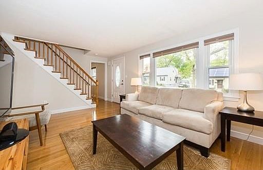 Lovely and sunny, this home has both that rare big backyard and 2 FULL BATHS! Walk into the cozy living room with a wood burning fireplace. One level living is possible with the first floor bedroom and adjacent full bath right down the hall from the bright and neat kitchen and dining room. Upstairs there are two over sized bedrooms with great closets and another full bath.Don't miss the extra finished space you need in the basement, perfect for either watching movies and relaxing, or using as a private office area. Save the best for last when you walk out on the deck overlooking a BEAUTIFUL huge and secluded back yard, with plenty of room for lawn games, gardening, and hosting summer bbq's. Lots of recent updates including CENTRAL AIR!!! Ideal location - near all the bustling shops and eclectic restaurants of Arlington Heights. Commuting is easy via the Minuteman Bikeway, the 77 bus to Harvard and 79 bus to Alewife, or by car with easy access to all major routes. Don't miss this one!