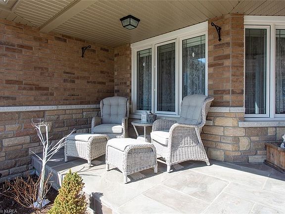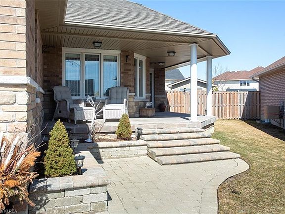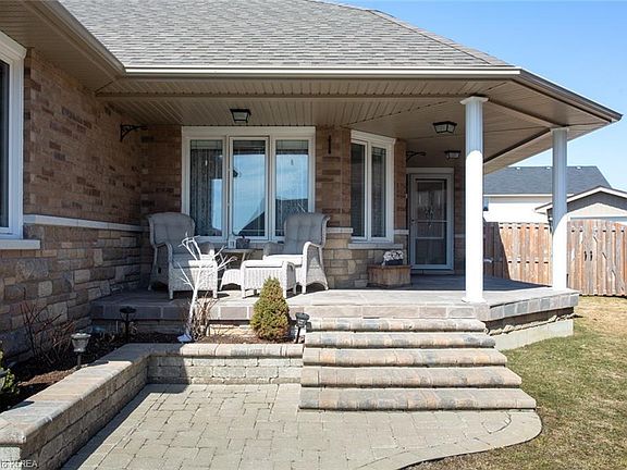This 5 yr old 3 bedroom 3 bath bungalow has been upgraded! Inside features a fantastic layout!! Boasting a sprawling open concept kitchen/great room with vaulted ceilings with gas fireplace, walkout to sunroom! 3rd bedroom is being used as a dining room currently. Downstairs features a partially finished basement with 3pc bath, double Murphy bed setup for additional guests, additional walkup stairs to the attached garage with separate entrance! Outside has been beautifully landscaped with a fully backyard on a pie shaped lot, including back patio and additional detached 11x15 garage/shed. In an area of newer homes, with parks and the trans Canada trail nearby!!