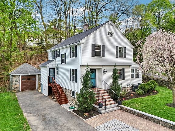Charming 4-bedroom, 1.5-bathroom colonial located on a picturesque, tree-lined street, offering the perfect blend of modern updates and classic charm. This house is "turn-key" move-in ready with many new updates and amentities such as: gleaming hardwood floors throughout, Central AC & Heat, Navian hot water system, newly renovated kitchen, upgraded utilities, irrigation system, landscape lighting, and more. The spacious first floor seamlessly flows from the front foyer to the living room (with fireplace), dining room, home office, kitchen, half-bath and sun room. The upstairs offers four spacious bedrooms and a full bathroom. Plenty of storage space in the basement & garage. Located in the scenic Fells Woods neighborhood, this house is a stone's throw away from hiking/walking trails, vibrant downtown Melrose, shops, restaurants, commuter rail, orange line, and acess to 93.