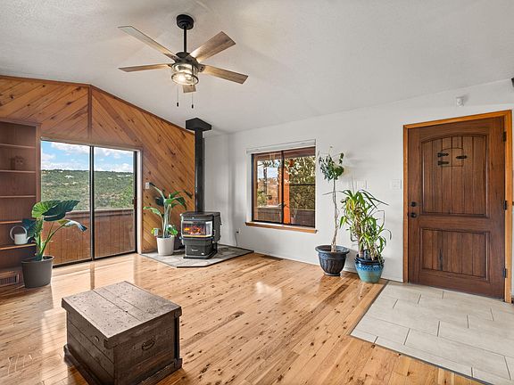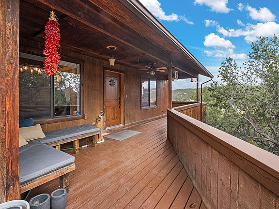 Experience refined mountain living in this serene retreat, framed by sweeping views and the scent of mountain trees. A wraparound balcony invites you to savor sunrise and sunset over the wooded landscape. Inside, natural wood accents and vaulted ceilings create a warm, airy ambiance. The thoughtfully remodeled kitchen features stainless appliances, IKEA base cabinetry with custom walnut fronts, while each bathroom has been fully remodeled for comfort and style. Enjoy a freshly refinished balcony, direct access to walking paths and national forest trails, and close proximity to Polks Folly, Triangle Grocery, Acorn Flowers & Gifts, Vista Grande Community Center, and the dog park.