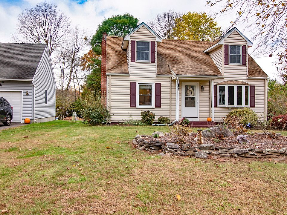 Welcome to this charming Cape nestled in a quiet Somers neighborhood. Thoughtfully maintained and freshly painted throughout, this four bedroom, two bath home offers a comfortable and flexible layout. The main level features a bright living room and an inviting eat-in kitchen with white cabinetry and granite counters. A convenient side entry mudroom provides easy access from the driveway into the kitchen, adding everyday functionality and flow. Two first floor bedrooms offer the option for a home office or den, while two additional bedrooms and a full bath are located upstairs. The level yard includes a deck and gazebo, creating a pleasant outdoor setting for relaxation. Central air adds to comfort year-round of this well cared for home. Ready and waiting for you to make it your own.