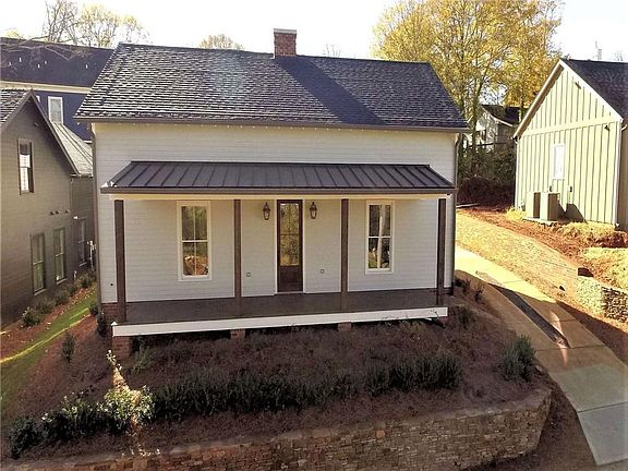 Move into this quaint, rustic-but-refined, 3 bedroom/3.5 bath farmhouse nestled in Historic Mill Village in Roswell's Historic District. The home is centrally located and is only steps from trails to the Roswell Mill, Vickery Creek Park, the Chattahoochee River National Recreation Area and numerous neighborhood parks. The home is walking distance to shops and dining at Old Roswell Square, Oak St., and Canton St. - over 2 dozen premier restaurants! Huge open floor plan (9 ft. ceilings), for living and entertaining. Reclaimed hand-hewn beams. Maple floors. Huge quartz island. All top-end appliances with a 48-inch range and pot-filler. Hidden, walk-in pantry. And a like-new feel.