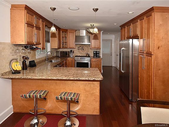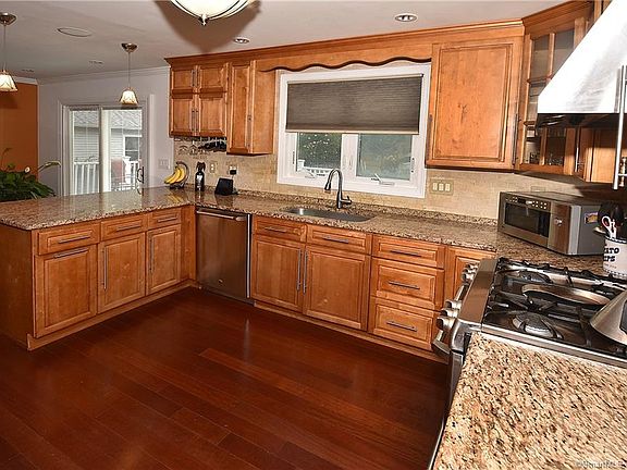 Beautiful 4 bedroom, 1.1 bath colonial that you can vacation at home in the wonderful backyard featuring a heated in-ground pool, a 16x16 brand new trex deck perfect for all your outdoor dining needs, or sit and relax by the fire at the fire-pit. This move in ready home has a stunning upgraded kitchen with loads of cabinets, granite counters, stainless steel appliances, a decorative tile backsplash, pot filler, and is open to the eat-in area with a slider overlooking the fabulous backyard. The 25'x12 living room boasts a fireplace for a cozy warm feeling on a cold winters night surrounded by built-ins to display your favorite pieces. The incredible half bath with laundry has been updated with new cabinets and granite counters. Upstairs there are four nice sized freshly painted bedrooms with good closet space and the full bathroom. An added bonus is the partially finished lower level with brand new luxury vinyl planking floor. There is a spacious outbuilding, pull down attic, new front rails, crown molding, recessed lights, gas heat, city water, and city sewer, vinyl siding enhanced by brick, in a very convenient location. (Brand new closet doors are on order and will be installed shortly All this and more, come check it out and see if this is your next dream home Call today, don't delay