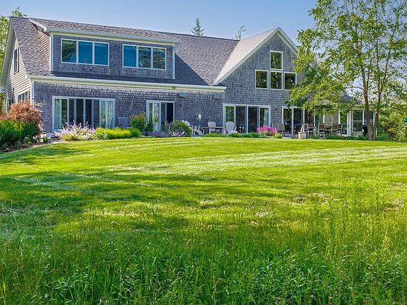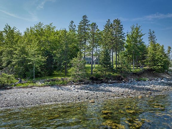 Striking oceanfront property beautiful sited on a private, beautifully landscaped point of land with 180-degree views of Frenchman Bay, the Porcupine Islands and the mountains of Acadia National Park. This custom-built, shingled home has a wonderful floor plan ideal for entertaining with an open concept kitchen, dining and living area with cathedral ceiling walls of glass doors overlooking the seaside deck, beautiful grounds, meadow and ocean beyond. The kitchen boasts granite counters with seating area, custom cabinets and stainless steel appliances. The first floor includes a lovely screened-in porch, a guest bedroom, full bathroom, office/den area and a spacious primary suite with wonderful water views, walk-in closet and a spa bathroom with soaking tub, granite vanity and a separate tiled shower. There is also a large laundry room/pantry with abundant storage and offers access to the large attached 2-bay garage. Upstairs is an open loft overlooking the living area and the ocean. The second floor also three guest bedrooms with water views and a shared bathroom. A large, unfinished attic space offers expansion potential. The walk-out basement has high ceilings, a workout room and a separate utility room with a newer furnace and state-of-the-art water treatment systems. The sunroom, living area and primary suite have doors leading to the outdoor deck which extends your living space in warmer weather. The grounds are stunning with a stone walkway, ferns, mature trees and a mowed path around the point. There are lovely sitting areas to relax while enjoying the dramatic views. Stone steps lead to a rocky beach perfect for launching a kayak or stunning sunrises. Built to be handicapped accessible, this wonderful home is located in a private seaside neighborhood yet is convenient to Lamoine Beach as well as restaurants, shopping and amenities in Ellsworth, Bar Harbor, Acadia National Park and the Schoodic Peninsula. 4-bedroom septic design.
