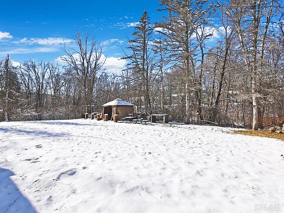 Welcome home to rustic Connecticut charm paired with flexible living space and timeless character. You are greeted by a warm living area featuring exposed wood beams and a beautiful stone fireplace that anchors the space with cozy appeal. Just beyond, your kitchen offers an abundance of cabinetry, giving you ample storage and functionality for everyday living and entertaining. Step outside and enjoy a wraparound porch that spans the front of the home, extends to the kitchen, and picks back up just outside your primary bedroom, creating multiple outdoor spaces to relax and unwind. Your main level includes three bedrooms and one full bathroom. The finished lower level adds incredible versatility with a full kitchen, full bathroom, and additional rooms that offer flexible use, providing potential for an in law style setup or other creative living arrangements. Your primary bedroom features double door walkout access to a private sitting porch overlooking a flat, fenced in yard and a peaceful stream, offering a tranquil setting for morning coffee or quiet evenings. With its distinctive layout, charming architectural details, and serene outdoor space, this home invites you to bring your vision and personal touch to make it truly your own.