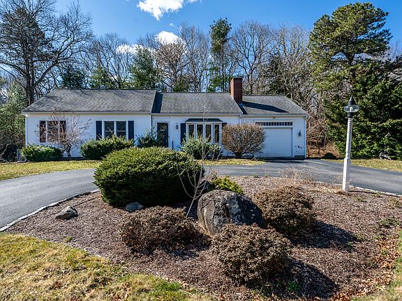 Hunter Hill Estates ranch is offered on a cul-de-sac in West Barnstable with three bedrooms and two and a half bathrooms. If the ocean makes you happy, Craigville Beach, Sandy Neck Beach, and Milway Beach are ALL within just 6 miles of the property! Built in 1994, the home boasts hardwood floors in the kitchen, living room, and dining room--vaulted ceilings in the kitchen, living room, and main bedroom. Oversized skylights throughout let the natural light in. Granite counters are found in the kitchen. The kitchen and dining room are open to each other with chair rails in the dining room. The laundry is on the first level. There is a direct entry garage with a paved horseshoe driveway and an attached deck outside in the backyard off the dining room. Additional heated finished living space is found on the lower level with a half bathroom. The home is heated with natural gas and has central A/C. So come spend your summer with your toes in the sand and the ocean breezes on your face.