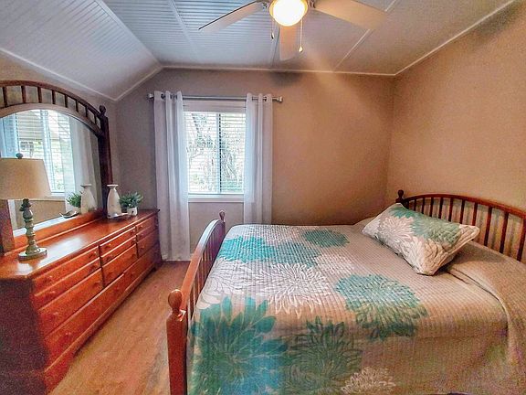 There is a separate bedroom with a queen bed along with a bathroom that features a tub/shower, sink and clothes washer. There is no electric dryer. Clothes must be hung on a rack to dry.