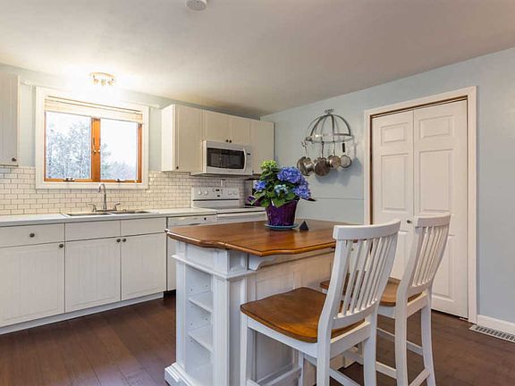 You'll fall in love when you see this meticulously maintained three bedroom, two bathroom ranch with two-car attached garage on over six acres of land! The newly updated eat-in kitchen and dining room boast recently installed bamboo flooring. The front to back living room features Bellawood floors. The walk-out finished lower level includes three bedrooms, a full bathroom, laundry room and mudroom. Enjoy your morning coffee on the back deck and spend crisp fall days in front of the woodstove. Mature landscaping includes blueberry and raspberry bushes, peach, apple and pear trees and a huge backyard with two storage sheds. All this in a great commuter location to Manchester, Concord, and the Seacoast.