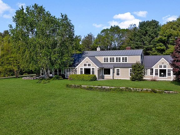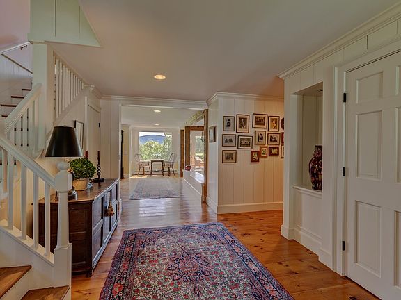 This New London estate home sits on 12.19 acres of lush lawns, open meadows, an apple orchard and wooded glade. The open concept living, dining and family rooms take full advantage of commanding views of Mt. Kearsarge. The chef-quality kitchen features top of the line appliances, a soapstone sink and abundant storage. Relax or entertain in the spacious screen porch which opens to a flagstone terrace. There are 2 private offices on the main living level. The primary first floor bedroom suite features a sitting area, a private entrance, a spa bath, large walk in dressing room and laundry. Upstairs a sitting room opens to two en-suite baths. The 2 car garage features a guest suite with bath up. A 3rd garage bay is connected by a rustic porch. The land has subdivision potential. Old Coach Road is a community of high-end quality homes where residents enjoy a quiet country road framed by old stone walls and a canopy of maple and oak trees. Beautiful surrounding fields and views have been forever conserved. The Lake Sunapee Country Club offering public dining and 18 holes of championship golf is a short walk from this significant New London estate home.
