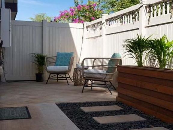 End unit Townhome at Kamalani with Volcano and West Maui Mountian views. Built in 2018. Conveniently located at the North end of Kihei and nestled away from Piilani Highway. Multi-level townhome which features 3 bedrooms and 2.5 baths and a single car attached garage. Step outside to a custom backyard oasis with river stone, paver walkways and custom built modern wood planters, perfect for your dream patio garden. Inside boasts air-conditioning in every room, gas range, quartz countertops, high capacity front loading washer/dryer, walk in master closet, double vanities in the ensuite as well as an on demand hot water heater. Rent includes fiber optic high-speed internet, water, trash and well maintained common areas. Ocean and shopping less than a mile away. NO SMOKING. Tenant pays GET, gas and electric. Landlord pays HOA which includes High speed internet, water and trash. Pet rent and pet deposit required on a case by case basis. Available immediately. Long term lease available, minimum one year. NOT FURNISHED. NO SMOKING.
