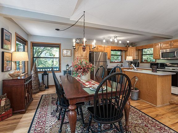 Imagine having your coffee on the deck with a sunrise view of multiple mountains and listening to the water rushing over the rapids of the Hiwassee River directly below.The deck wraps all the way around the house and In the evening, enjoy sunsets from the deck at the other end of the house. A lower deck with mountain views also provides the ideal spot for a hot tub This could be yours, a warm and inviting home that has all of the characteristics of a very livable mountain home with an added touch of modern farmhouse. Rooms feature walls of windows in every direction that bring in light, views of mountains and woods and create a feeling of a mountaintop treehouse.The vaulted great room combines a dining room that easily accommodates a large dining table, a cook's kitchen with generous counter and cabinet space and an island with power and a separate breakfast bar. All this is open to a large living room area with a floor to ceiling stone woodburning fireplace. Built-in custom bookcases on either side of the fireplace offer room for books and displays of collectible treasurers.From the living area, enter the office and sun room areas which also feature stunning views.Down the hall is a full laundry room, a hall closet and linen closet and a large master bedroom with ensuite bath.Opposite this is the second bedroom/den which also has a full bath and closet. The home has plenty of storage,with owner-added large storage rooms under the house addition that are off the ground, secure and dry.There is also a full-height crawl space which houses both furnaces and the water heater and provides additional storage.Ceiling insulation in this space was replaced in 2022 along with addition of a vapor barrier. In addition to the deck,the property also offers a paver patio level with fire pit.The property is landscaped and terraced. Discover the unique treasure the current owners have loved so much. Homes come fully furnished.
