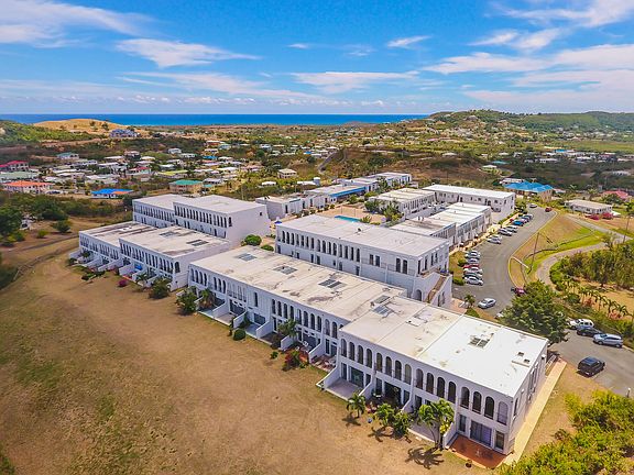 You can have it all! This rarely available L unit 3BR/2.5BA townhouse duplex unit boasts a commanding view of Christiansted Harbor and Buck Island visible from living room and balcony. Recently updated, this unit has a refurbished kitchen,tile back splash and newly installed lights and fans. Master with ensuite bath, plus two additional bedrooms are downstairs. Unit has a washer and dryer, new water heater and new air conditioning units in the western facing bedrooms. Estate Questa Verde is conveniently situated mid island and is a gated community with pool, landscaped gardens and onsite management office.