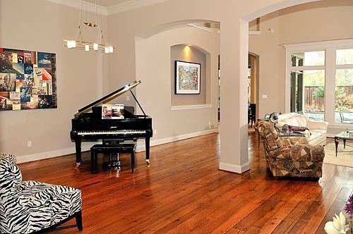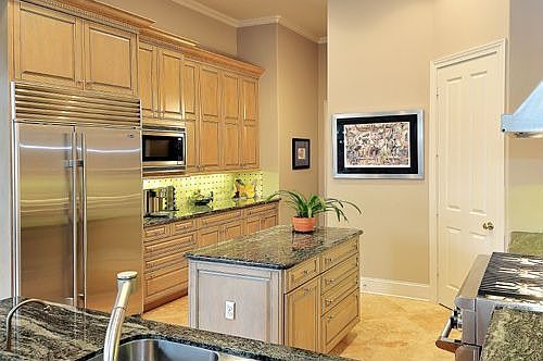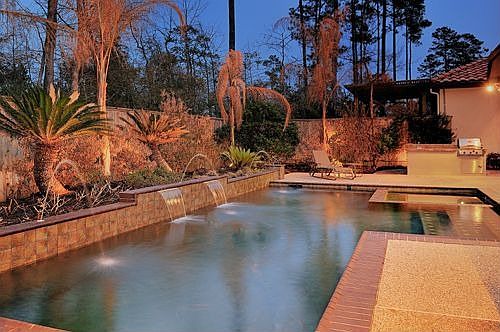 Fabulous home in Rhapsody Bend with resort-style backyard oasis, lush greenbelt, great curb appeal & landscaping. Stunning 2-story entry foyer accented with an intricate travertine mosaic pathway, an abundance of natural light and wrought iron stair balusters. The owners' retreat is located on ground level and features a separate sitting area. The retreat also features a spa-like bath with travertine and granite accents, plus separate walk-in closets with great built-ins. The kitchen is the heart of this home and features gorgeous granite, stainless steel appliances, including a Thermador gas range and a subzero refrigerator. Upstairs are a game room, two secondary bedrooms and 2 full baths. Built-in desks are found in a secondary bedroom and game room. Extend the entertaining outdoors around the sparkling pool accented by an outdoor kitchen complete with bar seating. Located walking distance to the Palmer Golf Course, this spectacular home is sure to capture your heart!
