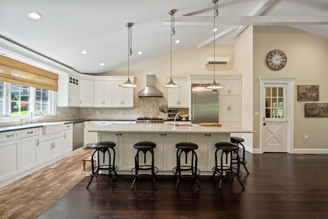 Welcome to this beautifully renovated 3-bedroom, 3-full-bath ranch, perfectly situated on an oversized property in one of the area’s most sought-after neighborhoods. Designed for modern living, this home features an open-concept layout that seamlessly connects the kitchen, dining, and living spaces—ideal for both everyday comfort and entertaining.