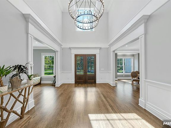 Welcome to this approx. 10,255 sq. ft. Center Hall Colonial offering 6 bedrooms, 6 full baths, and 1 half baths. A classic lemonade porch wraps from the front to the right side, welcoming you into an elegant interior with 10 ft ceilings on the first floor and 9 ft ceilings on the second. Each bedroom features tray ceilings, while detailed trimwork and wainscoting accent both staircases and extend into the fully finished lower level with 9.5 ft ceilings, a fireplace, and a full bath. The gourmet chef's kitchen is the heart of the home, showcasing an oversized marble island, Thermador appliances, a butler's pantry, a large bar, and a dramatic two-story breakfast room with French doors opening to a blue stone patio and private backyard. The first floor also offers a family room with fireplace, formal living and dining rooms, an office, a mudroom, a powder room, and an additional full bath. The lower level is designed for entertainment with a private movie theater, while the resort-style backyard features a heated saltwater pool, creating the perfect space for relaxation and gatherings.