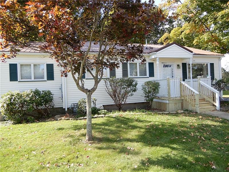 Perfect Package Nestled on a great lot with black top drive that leads into a huge 2 car garage. This 2 bedroom home offers 2 full baths and more storage than imaginable! A breezeway/room is host between the garage & kitchen. Nice size kitchen. The living room offers a large front window.Master bedroom offers adjacent full bath. The 2nd bedroom hosts an extra area to use as a walk in closet, office area or even a bedroom Extention. A full basement for extra room. The laundry is located in the basement but enough room to put upstairs for one level living. New metal roof. Black top drive. Great location next to school & close to town. Nice neighborhood area.