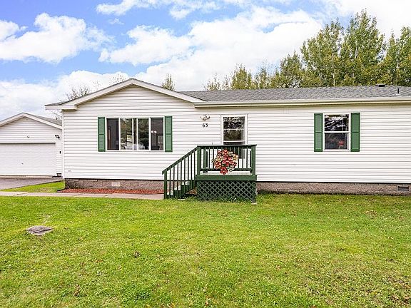 Spacious and well-maintained manufactured home situated on a prime lot within the park, featuring a large insulated mechanics garage and an expansive yard. Enjoy both front and rear decks, recently rebuilt for easy outdoor living, along with a gravel-based storage area and thoughtful landscaping. Recent updates include a new clothes washer, new furnace fan and igniter, and a recently serviced central air unit to ensure comfort year-round. Wired network jacks are installed in both the living room and primary bedroom for convenience and connectivity. Located just a couple blocks from a snowmobile trail and close to walking paths, this home offers the perfect balance of comfort, functionality, and recreation—all in one great setting.