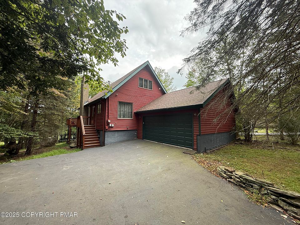 Welcome to 63 S. Fairway Dr Lake Ariel. This well maintained 4 bedroom, 2-1/2 bath, 2-car garage, Chalet sits on The Hideout Golf Course which is a private course. As you pull into the black-top driveway which has ample parking for 6 cars. You will find the attached 2 car garage to be a plus especially in the winter months when you will be thankful you don't have to go out and clear off your car with the amount of snow that can accumulate during the winter. Once you walk into your newly renovated home you will be greeted by a slate entry floor, and off to your left is an over-sized Living Room which has been tastefully decorated. You will find Hardwood floors through-out the home as well as ceramic tile and Luxury planking. As you leave the living room you enter into the dining room which has a large picture window that overlooks your private yard and the golf course through the woods. Enter the kitchen with it's rich cabinetry and upscaled fridge, dishwasher and stove top, and wow, check out the double wall oven great for those Holiday family gathers. The kitchen has subway tile as your back splash all around, which compliments the granite counter tops. From the kitchen you can go out your back door which leads you to the large wrap around deck and enjoy the views of your private yard, or watch golfers pass by. The kids will love the trampoline that is in the back yard and the large fire-put is perfect for those evenings when friends, and family are looking to have a cozy social gathering. Back in the home from the back door you would turn left and you enter into a black and white very pleasing bathroom from which you can enter your 1st bedroom or enter the first bedroom from the main foyer upon entering into the home which has hardwood floors as well. From the bedroom enter into your foyer go up the stairs and you will find 2 more beautiful bedrooms off ot he right is your guest bedroom and off to the left is your Main Bedroom both bedrooms are separated with hallway which is large enough to accommodate a couple of chairs and a small end table for a nice reading area.