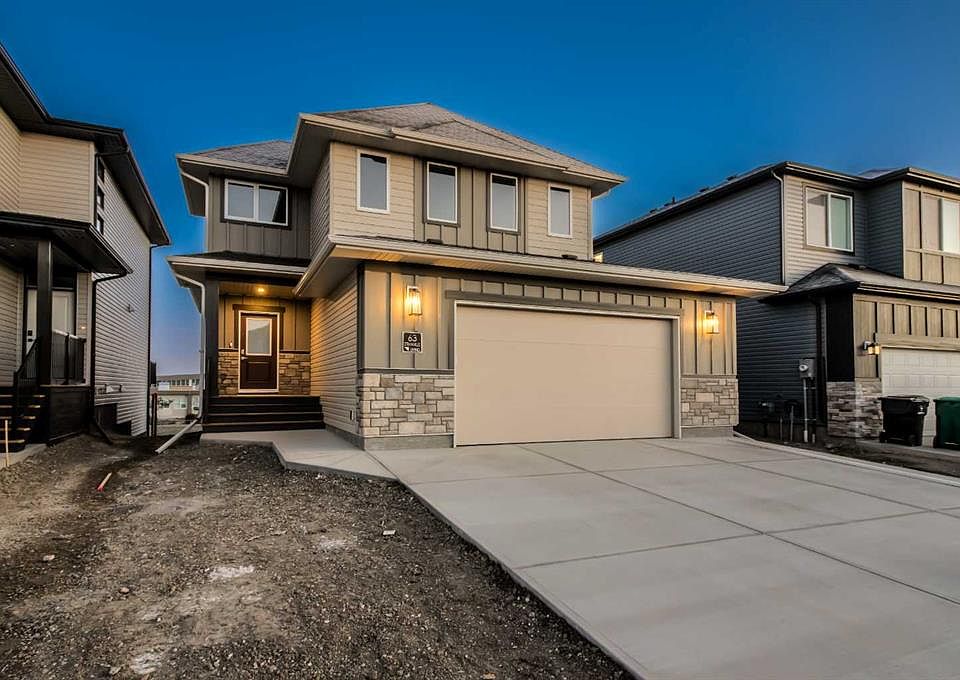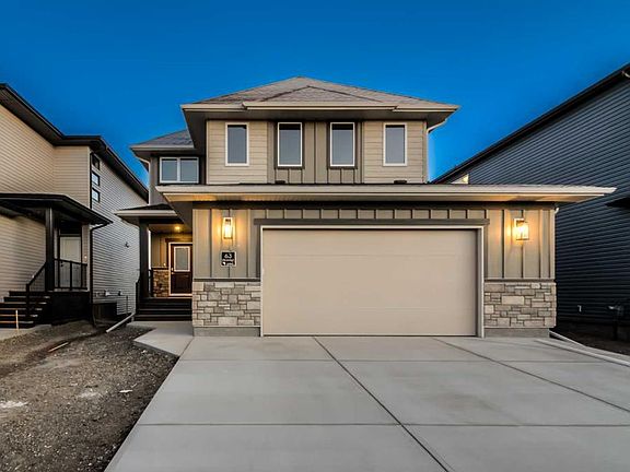 Welcome to the Juniper by Stranville Living Master Builder, a unique two-storey model located in the vibrant West Lethbridge community of Copperwood. IYKYK - this community has been the hub of the westside since 2006 and it's multiple parks, walking paths, and ponds provide the scenery and recreational opportunities not found in every neighborhood. Access to the Cavendish Farms Centre and the many restaurants and shopping is a quick trip across Whoop Up Drive, not to mention the Lethbridge LDS Temple, which is currently under construction in the same area. At just over 1,800 square feet of developed area, this 4-bedroom home is as versatile as it is beautiful, both inside and out. The main floor includes a beautifully appointed kitchen by Adora Cabinets, fully tiled backsplash, and quartz countertops for both the base cabinets and island with extended bar. Stranville Living's top tier appliance package includes a seamlessly integrated paneled Fisher & Paykel fridge, paneled dishwasher, induction cooktop, built-in hood fan, and a stainless steel wall oven and microwave combo unit. A sleek electric fireplace accents the main floor living room with a wall mounted mantle that is crisp and clean. A large sliding glass door exits onto the future deck and sits adjacent to a massive rear rake style window with park views for days. The unique element of this main floor is a flex room that can be either an office for those needing to work at home or an auxiliary bedroom with direct access to a full 4-piece bathroom, which sets up perfectly for someone with mobility issues, like an aging close relative. Upstairs, you'll find the large primary bedroom and ensuite with double vanity sinks and a lovely tiled shower. Two more bedrooms, another 4-piece bathroom, a bonus room, and laundry room complete this upper level. The oversized garage is 25' wide, sitting on a lot that is 42' wide, making this one of the largest parcels on the block. Don't forget about the high efficient mechanical equipment, Low E windows, and spray foam in the rim joists that help keep your heating and cooling costs in check. Photos may contain virtual staging.