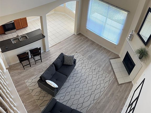 Fabulous 2-story home with stunning views inside and out. Entertain family & friends in the open concept floorplan with its soaring ceilings. Very clean. Kitchen with stainless steel appliances, 42" tall cabinetry, and bar seating. Separate large breakfast area. Super-sized primary bedroom with sitting area at bay windows. Primary bathroom with dual sinks, shower, jetted tub, and large closet to match. Formal dining room. Staircase with intermediate landing leads to the second floor, where the home continues to impress with three spacious bedrooms, a large game/media room, and a computer nook. Plenty of closet space throughout. Big backyard with no back neighbor! Washer, dryer, and refrigerator are included.