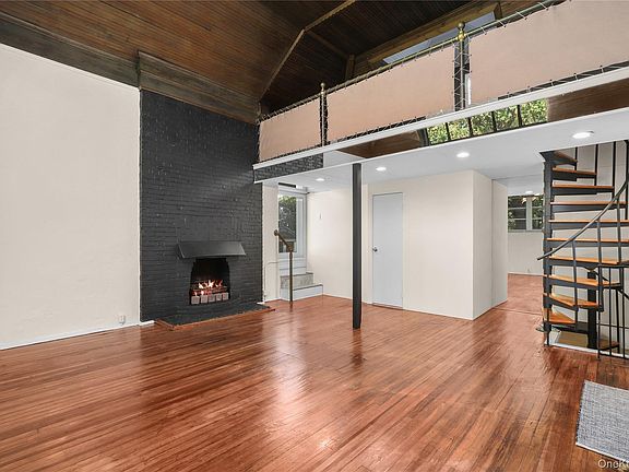 This enchanting home features soaring 25-foot ceilings, an open living area with access to a sun deck, a beautifully renovated full bath, and a spiral staircase leading to a cozy bedroom loft. The lower level includes a second bedroom, a new bath, and a spacious kitchen with new appliances and an inviting dining area that offers magnificent views of the waterfront property and access to a large patio perfect for entertaining or relaxing by the water.