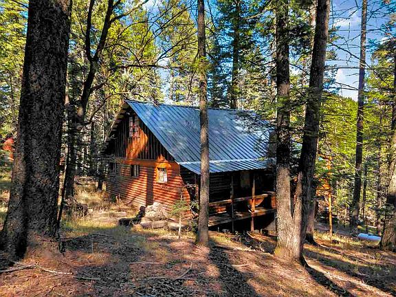 Rustic log sided cabin sits in the upper part of Chippeway, less than 50 yards from National Forest. Mostly on single level, living room, kitchen, 3 bedrooms & bath are all on main level. Roomy living room has brick fireplace, wood lam floors. Attic game room has half bath, perfect for overflow guests. Exterior is in beautiful condition, newer metal roof, nice covered decks with forested views. Storage underneath cabin. Off street parking area with steps down to cabin. Property goes road to road.