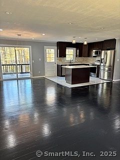 Step inside to an open-concept layout ideal for modern living. The kitchen features tile flooring, stainless steel appliances, quartz countertops, and an island-perfect for cooking and entertaining. The living room and bedrooms showcase refinished hardwood floors that add warmth and character throughout. From the main level, enjoy direct access to a deck overlooking the backyard, ideal for relaxing or outdoor dining. An updated full bathroom completes this level. The lower level offers a comfortable family room with a tile floor and a wood-burning fireplace, perfect for gatherings or quiet evenings at home. You'll also find an updated full bathroom with a soaking tub, convenient access to the washer and dryer, the garage, and direct entry to the backyard. Situated just minutes from Trumbull Mall and major routes including Route 25, Route 8, and the Merritt Parkway, this home offers easy access to shopping, dining, and commuting options. The landlord is responsible for the solar lease.