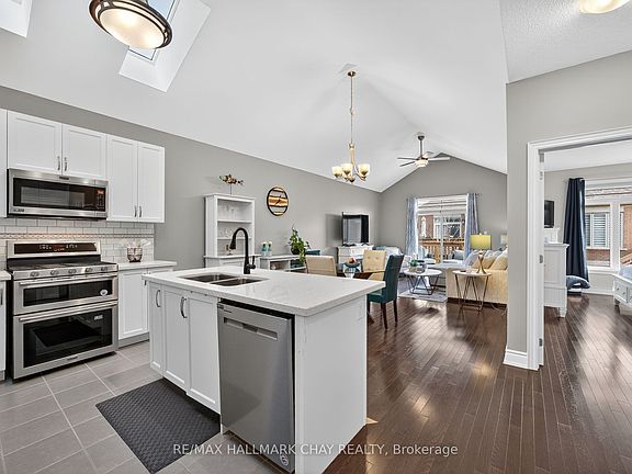 Bright open-concept main floorSoaring vaulted ceilingsOversized patio doorNatural lightHardwood floorsUpgraded trim packageModern white kitchen