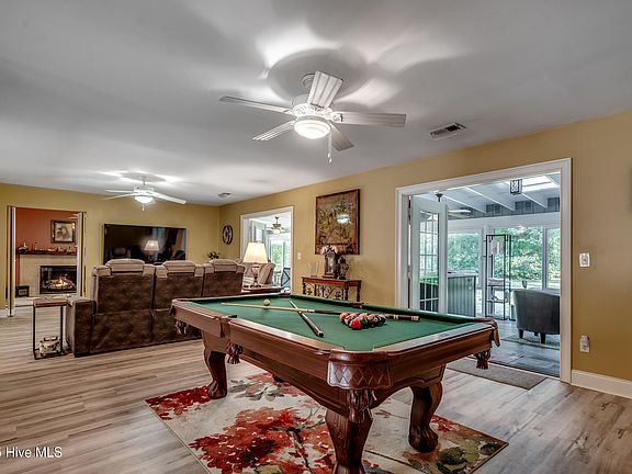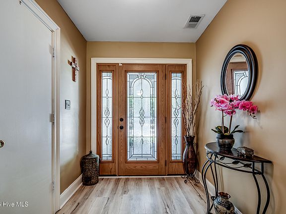 This incredibly expansive, custom stonefront home, with 1.38 acres in beautiful Carolina Shores, is just minutes to Sunset Beach and the Calabash waterfront. You immediately feel the space and tranquility when entering the massive, concrete circle driveway for easy entrance and departure. The single-story layout flows from a welcoming foyer into a spacious great room that flows beautifully. The easy-working kitchen/dining area is designed for everyday life and features Custom Cabinets, Granite Counters, and Stainless Steel Appliances.