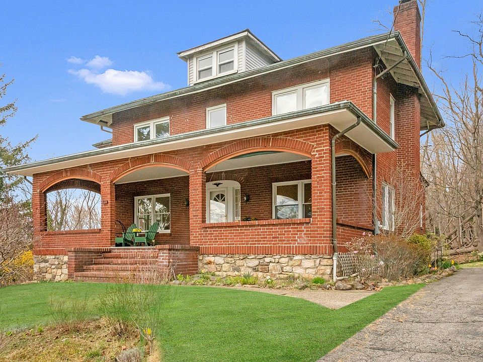Welcome Home to timeless charm and modern comfort. Like a warm embrace, this enchanting 1920s red brick Colonial invites you in with classic elegance and thoughtful updates throughout. Tucked in a picturesque and sought-after residential neighborhood just minutes from vibrant shops, dining, and Metro-North train, this home offers the perfect blend of old-world craftsmanship and today’s conveniences. From the moment you step onto the covered front porch, you'll sense the enduring quality and craftsmanship of a home built to last. Inside, you're greeted by freshly painted interiors and stunning original hardwood floors with inlaid borders that flow throughout the main and bedroom levels. High ceilings in the formal living room create an airy ambiance, while new Andersen windows and a wood-burning fireplace add warmth and efficiency. Adjacent to the living room, a light-filled sunroom with Andersen windows and gleaming hardwood floors provides a cozy retreat or reading nook. From here, step out to a spacious screened-in porch with ceiling fans—an ideal seasonal haven for entertaining, relaxing, or dining al fresco. Enjoy peaceful backyard privacy and even seasonal distant Hudson river views.