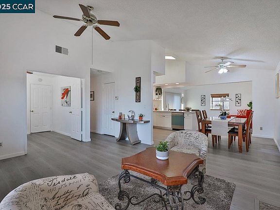Welcome home! This beautifully updated 3 bedroom, 2 bath home offers a bright and airy floor plan with brand-new laminate flooring and fresh interior paint throughout. The gorgerous new kitchen is a chef's delight, featuring quartz countertops, new cabinets, and stainless steel appliances, including dishwasher, oven, and microwave. The open layout seamlessly connects the living room with a cozy fireplace, the spacious dining area, and the large family room with vaulted ceilings, creating an inviting space for gatherings. The primary bedroom is generously sized and opens to the backyard, providing a peaceful retreat. Situated on a large corner lot, this home boasts excellent curb appeal, RV/boat parking, and plenty of outdoor space to enjoy. Don't miss this incredible home!